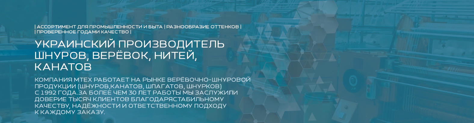 Добро пожаловать на главную страницу интернет-магазина Mtex! Мы специализируемся на производстве шнуров, веревок, тросов, а также шпагатов различных размеров, цветов и толщин. Наш каталог включает широкий выбор товаров, необходимых в сельском хозяйстве, повседневной жизни, пищевой промышленности, торговле, на даче, а также в различных отраслях производства для хозяйственных и вспомогательных нужд.